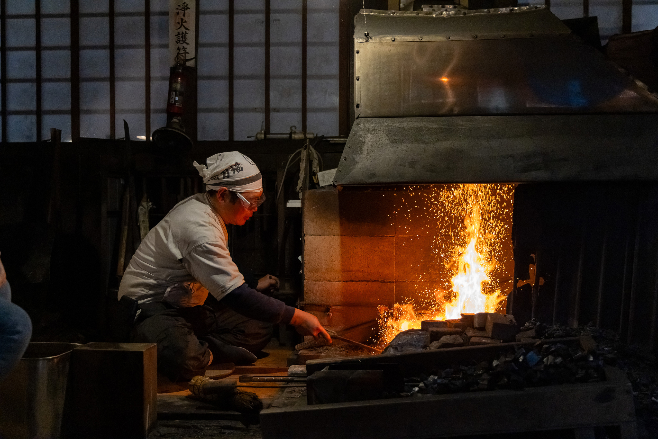 火花飛び散る刀鍛冶の鍛錬を見学(90分)