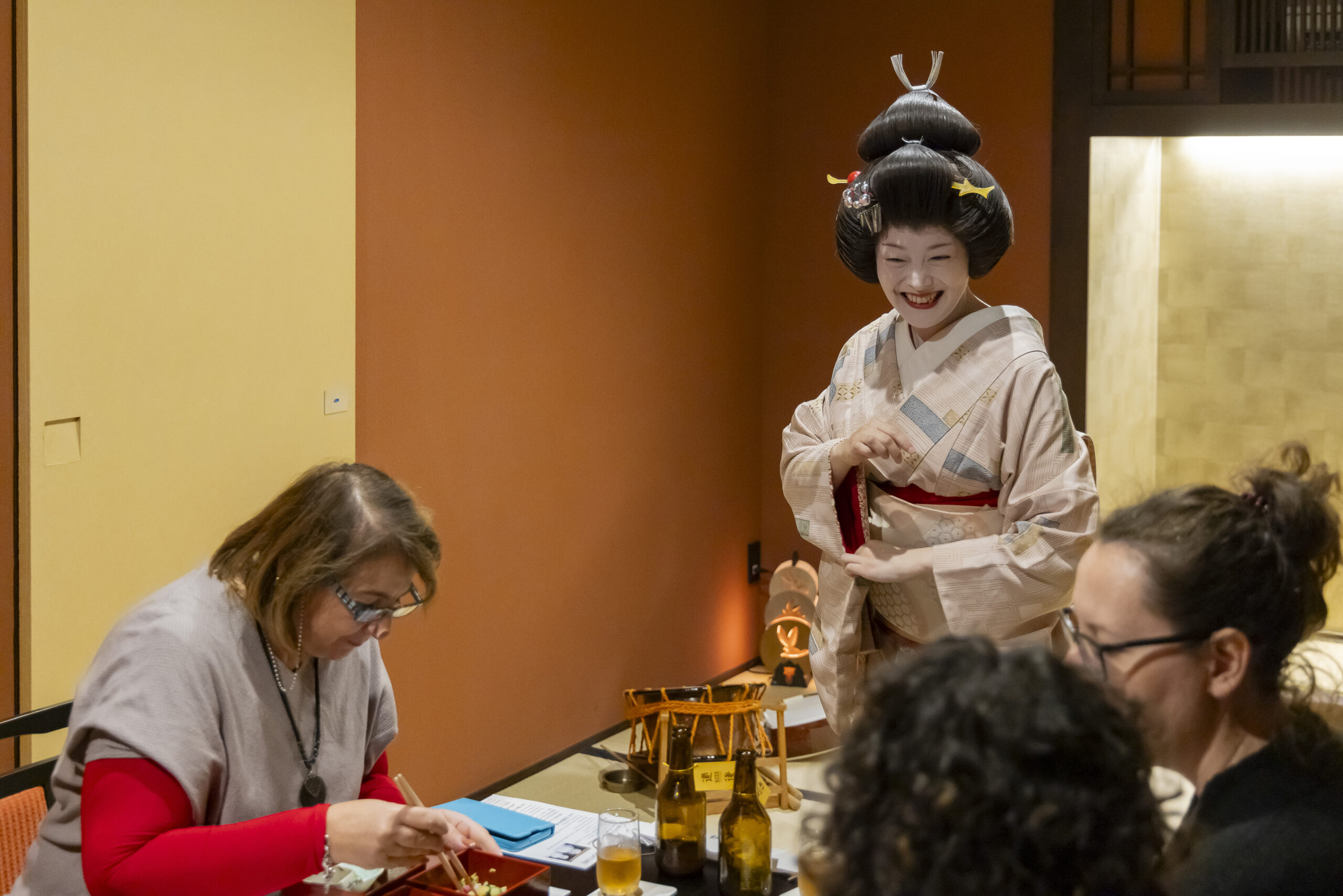 非日常な時間をお過ごしいただける「お座敷体験」(オプショナル体験)では、お料理と共に芸妓さんの華やかなおもてなしをご堪能いただけます。4月~6月にはスペシャルデーとして日時限定でお座敷体験もセットになったプランをご用意しておりますので合わせてご覧ください。※スペシャルデー以外の日程にはお座敷体験は含まれませんのでご注意ください。