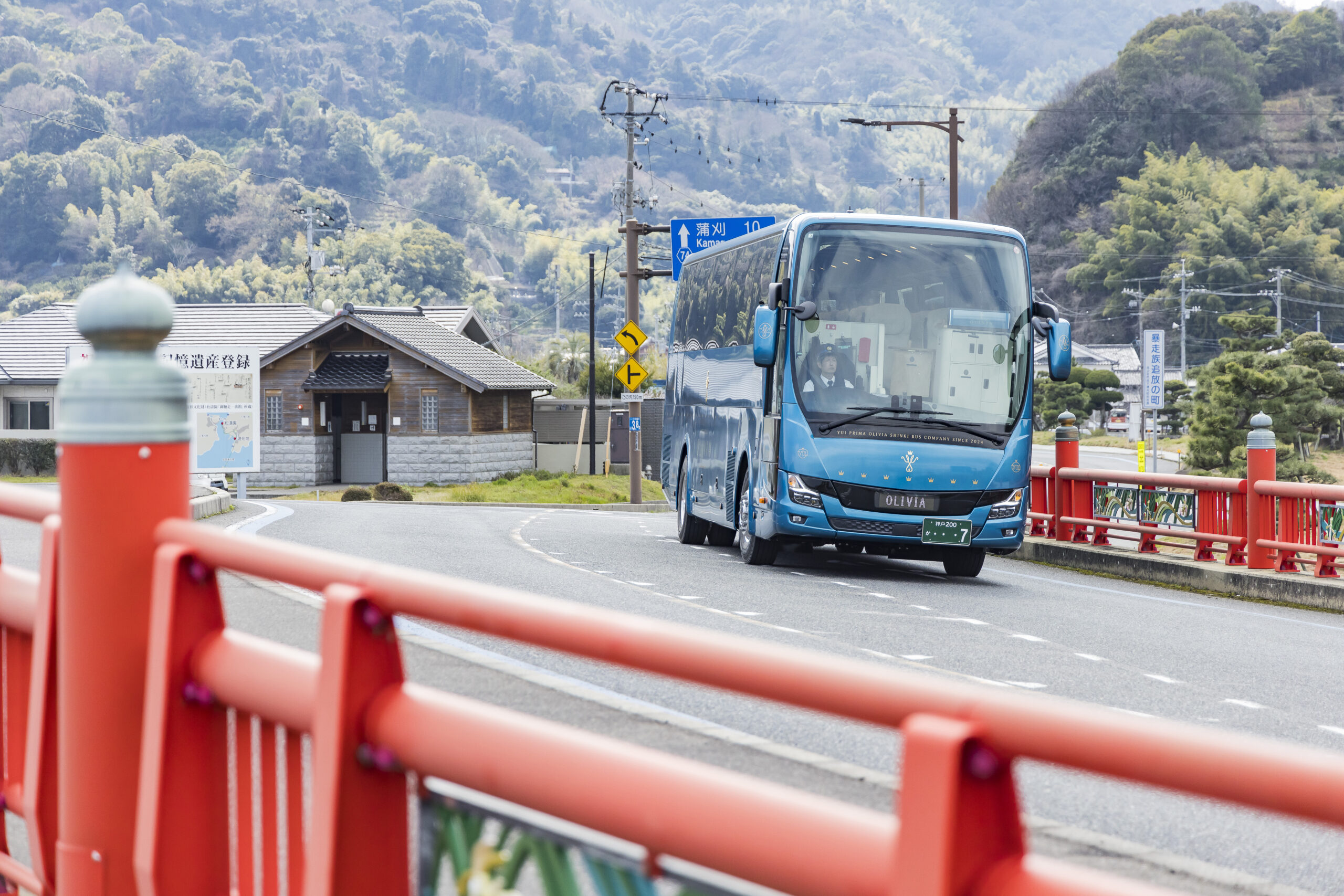 その後、伯方島を経由し大三島の宗方港へ。フェリーに乗り込み、岡村島から安芸灘諸島を経由し、広島県呉市まで7つの橋で結ぶ安芸灘とびしま海道を走り、瀬戸内の島々を眺めながらのドライブ。YUI PRIMA OLIVIAのワイドな車窓から臨む海に浮かぶ島影は、未だ知られていない日本の美しさとも言えるでしょう。