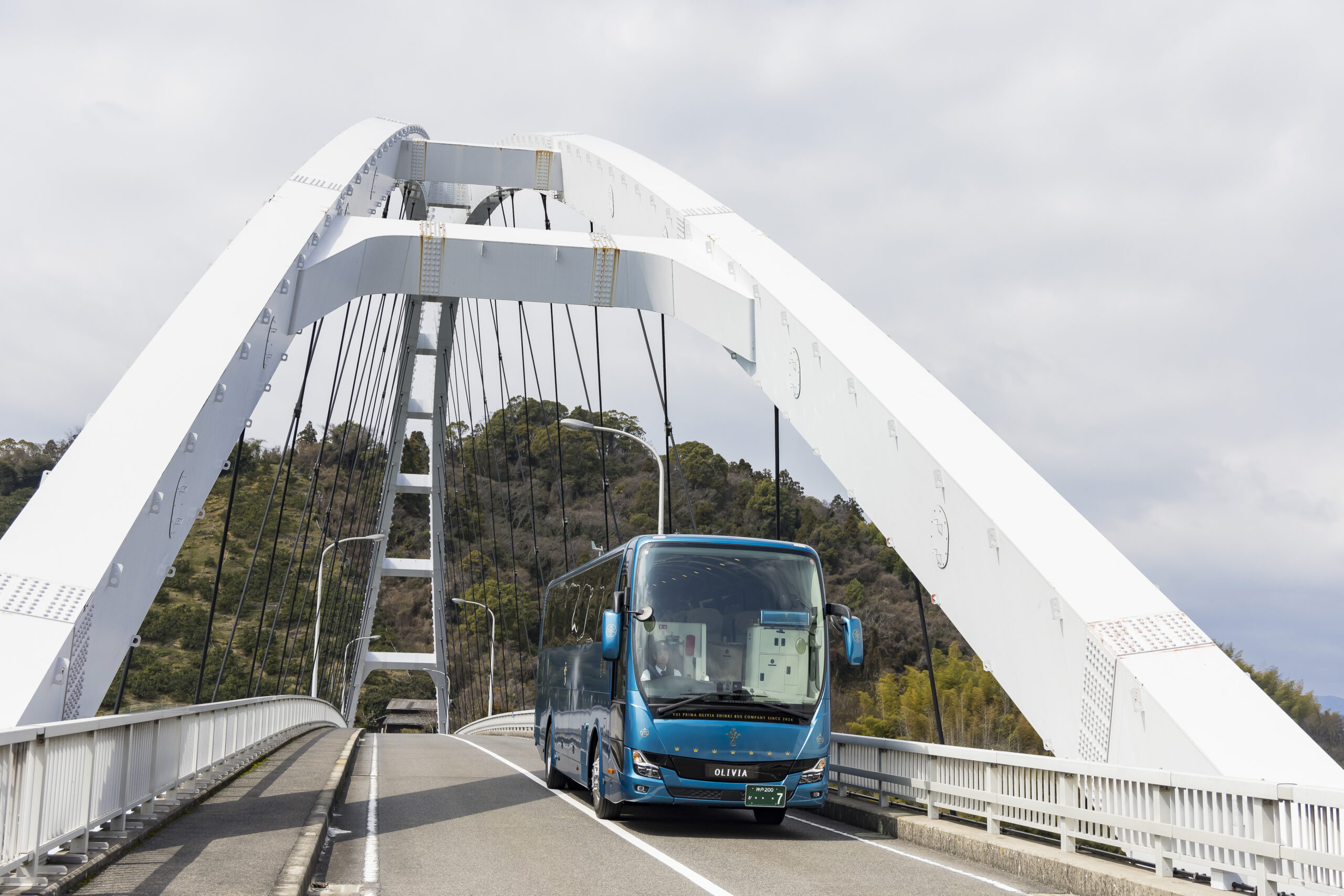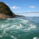 建築家・隈研吾氏による設計として知られるパノラマ展望台ブリッジからは、世界初三連吊橋「来島海峡大橋」と日本三大急潮のひとつ「来島海峡」の潮流、晴れた日には西日本最高峰「石鎚山」を眺める事ができます。